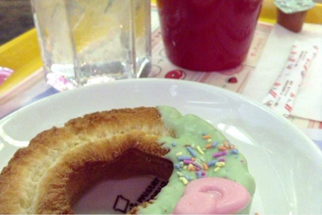キティちゃんの本体とも言われているリボンが今回のドーナツに共通してついています。ホワイトチョコで作られたリボンはなかなかいいおまけです。