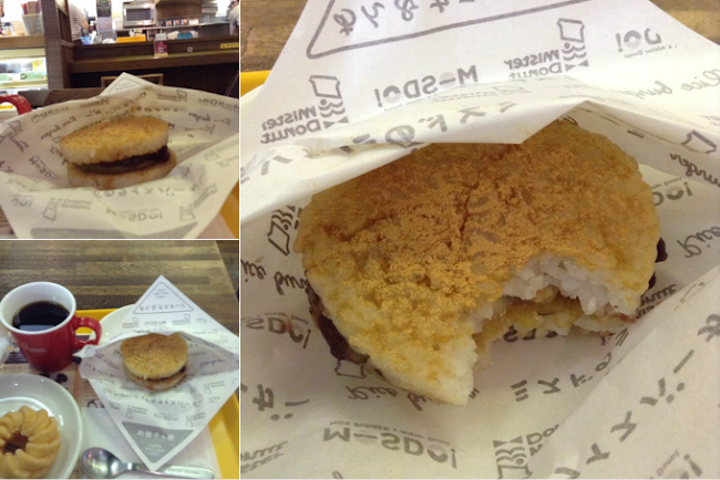 お勧めはドリンクとドーナツ一つつけたセット520円!理由は出来たてをくれるのでご飯は暖かいうちが美味しいので早く食べちゃう。それに単品324円なのにドリンクセットが420円、ドーナツセットが520円とドリンク100円扱い。やすい。ドリンクとドーナツ頼んだらライスバーガーついて来たくらいなっとるやん!