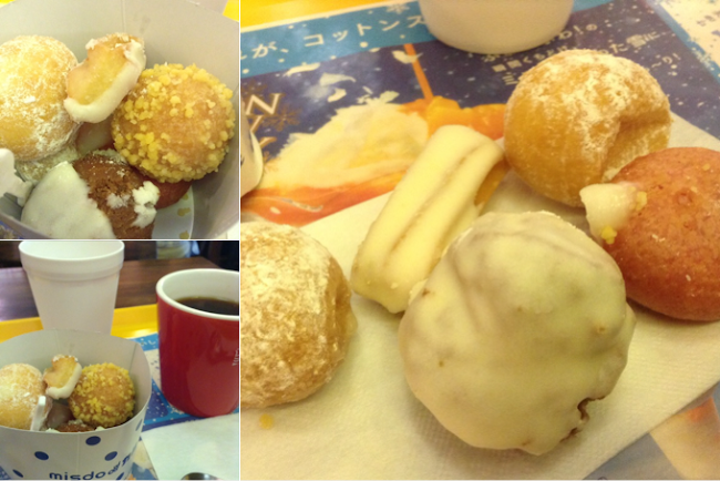 次はカルピスふんわりボール これはレギュラードーナツのシェルを小さくしたもの。大きいと粉が口の周りについたり大変なので上品な方にはこちらがお勧め。